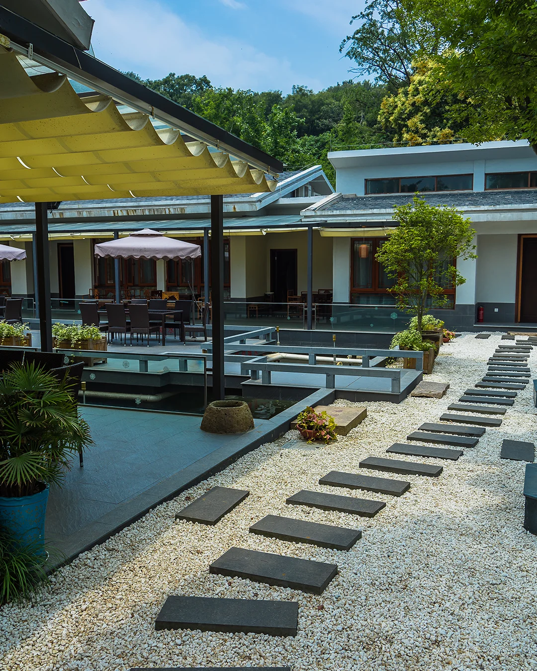 We use high-quality materials such as natural stone, wood, concrete, and premium landscaping elements.